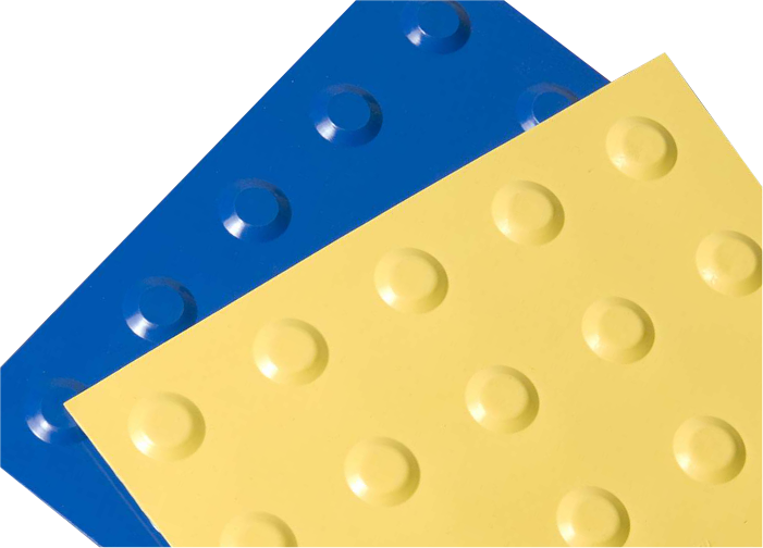 As placas de PVC argamassado alertam as pessoas com deficiência visual em ambientes internos e externos. Esse material composto a base de PVC é indicado para ambientes que necessitam de resistência e durabilidade na instalação devido ao diferente processo de fixação que evita possível soltura quando exposto a umidade, atrito e força de arrancamento. O tamanho mais utilizado é 25cm X 25cm e os produtos são oferecidos em cores diversificadas que atendem os requisitos de sinalização e programação visual dos ambientes.